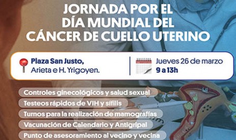 El Municipio de La Matanza llevará adelante este jueves 26 de marzo una jornada de salud ginecológica y prevención del cáncer de cuello uterino en la Plaza San Martín de San Justo, de 9 a 13 horas. La actividad es gratuita y abierta a toda la comunidad.