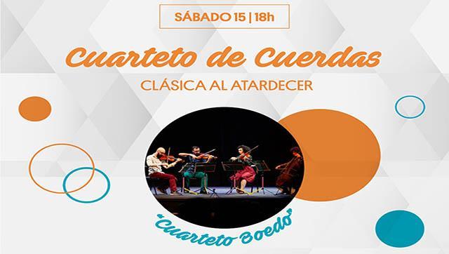 En esta oportunidad, el Ciclo invita a disfrutar un concierto de cuerdas de la mano del Cuarteto Boedo, formación musical integrada por Leo Pérez y Joaquín Chibán en violines, Valentina Vescovi en violoncello y Luz García Souto en viola, el que propone un diálogo entre la música clásica y otros géneros populares.