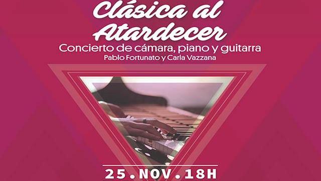 Organizado por la Secretaría de Cultura y Educación de La Matanza, el ciclo Clásica al Atardecer presentará un concierto de cámara a cargo del guitarrista Pablo Fortunato y la pianista Carla Vazzana que interpretarán una selección de obras reconocidos compositores del siglo XX y contemporáneos