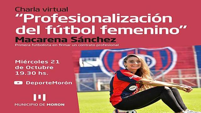 El municipio de Morón realizará este miércoles 21 de octubre a partir de las 19:30 hs, una charla virtual “Profesionalización del fútbol femenino”, la cual será dirigida por Macarena Sánchez, la primera futbolista en firmar contrato profesional.