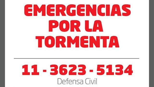 Defensa Civil por llamada o WhatsApp al 113623-5134.