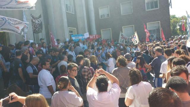 Tras las 122 cesantías dispuestas el martes por la conducción del Hospital, esta mañana se celebró una masiva asamblea y marcha de protesta de sus trabajadores, acompañada por un amplio espectro de organizaciones políticas, gremiales y sociales y las Madres Nora Cortiñas y Hebe de Bonafini. Ante la falta de respuestas de las autoridades, se profundizará el reclamo. Gendarmes filmaron a los manifestantes.
