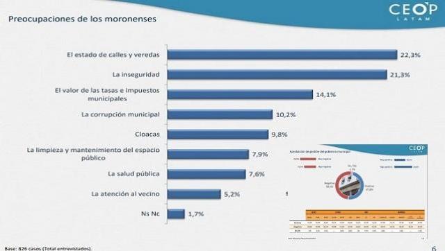 Por su parte, el ex intendente de Morón durante el periodo 2009 – 2015, Lucas Ghi, alcanza un nivel de aprobación del 43,8%. El trabajo de la encuestadora CEOP señala que Ghi “conserva un buen nivel de imagen positiva compensando con la negativa. Sus mejores números los cosecha en el barrio de Morón”, mientras que la situación es adversa en la localidad de El Palomar.