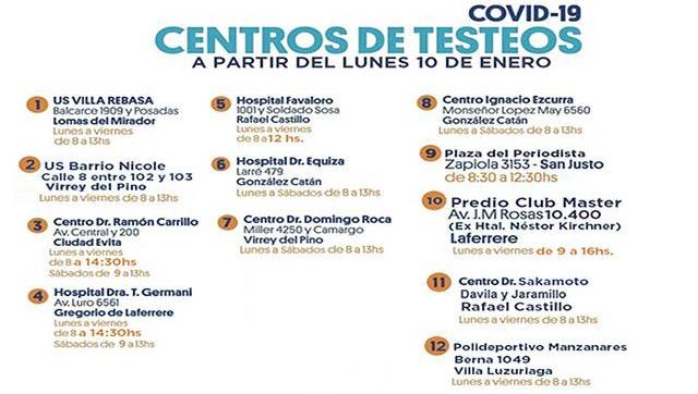 Junto a este nuevo Centro que comienza a funcionar, a continuación el listado completo de centros de testeos a partir del 10 de enero: