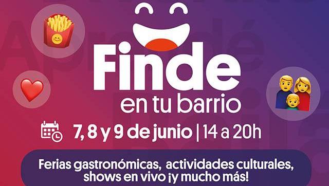 Este viernes, sábado y domingo , 7, 8 y 9 de junio, Finde en Tu Barrio tendrá lugar en las localidades de Gregorio de Laferrere y Villa Luzuriaga, desde las 14h, con entrada libre y gratuita, actividades para todas las edades y sorteos.