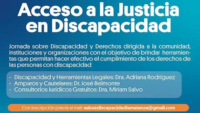La Secretaría de Desarrollo Social llevará a cabo una jornada, Acceso a la Justicia en Discapacidad, que brindará información, acompañamiento y asesoramiento a las vecinas y vecinos interesados, y contará con la participación de la Defensoría General y el Colegio de Abogados de La Matanza.