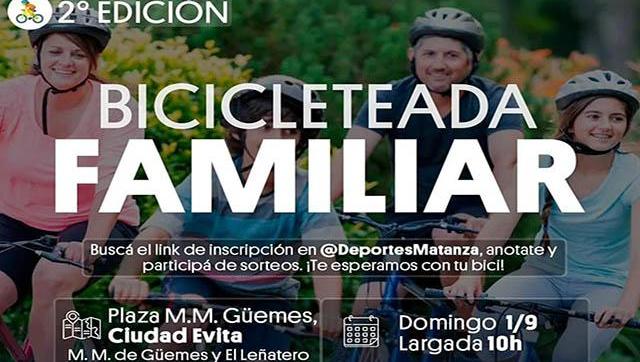 Este domingo 9 de septiembre, el Municipio de La Matanza, a través de la Secretaría de Deportes y Recreación, llevará a cabo la 2° edición de la Bicicleteada Familiar, esta vez en la localidad de Ciudad Evita. Luego del éxito de la primera edición en Virrey del Pino, las y los vecinos están invitados a participar de esta nueva jornada de ciclismo comunitario.