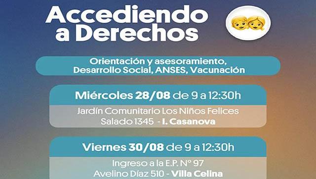 El Gobierno de La Matanza continúa brindando apoyo a las familias del distrito a través de "Accediendo a Derechos", una serie de jornadas de asesoramiento y asistencia gratuita. Esta semana, el programa llegará a las localidades de Isidro Casanova y Villa Celina, ofreciendo una amplia gama de servicios a la comunidad, desde vacunación hasta apoyo en trámites sociales.